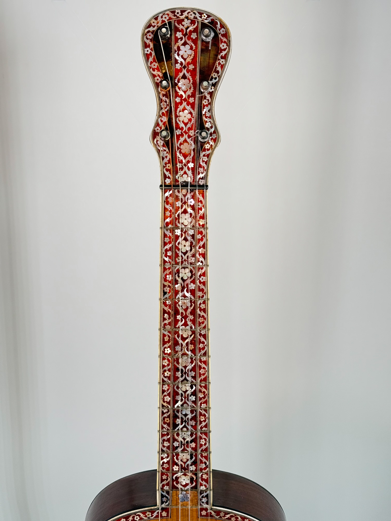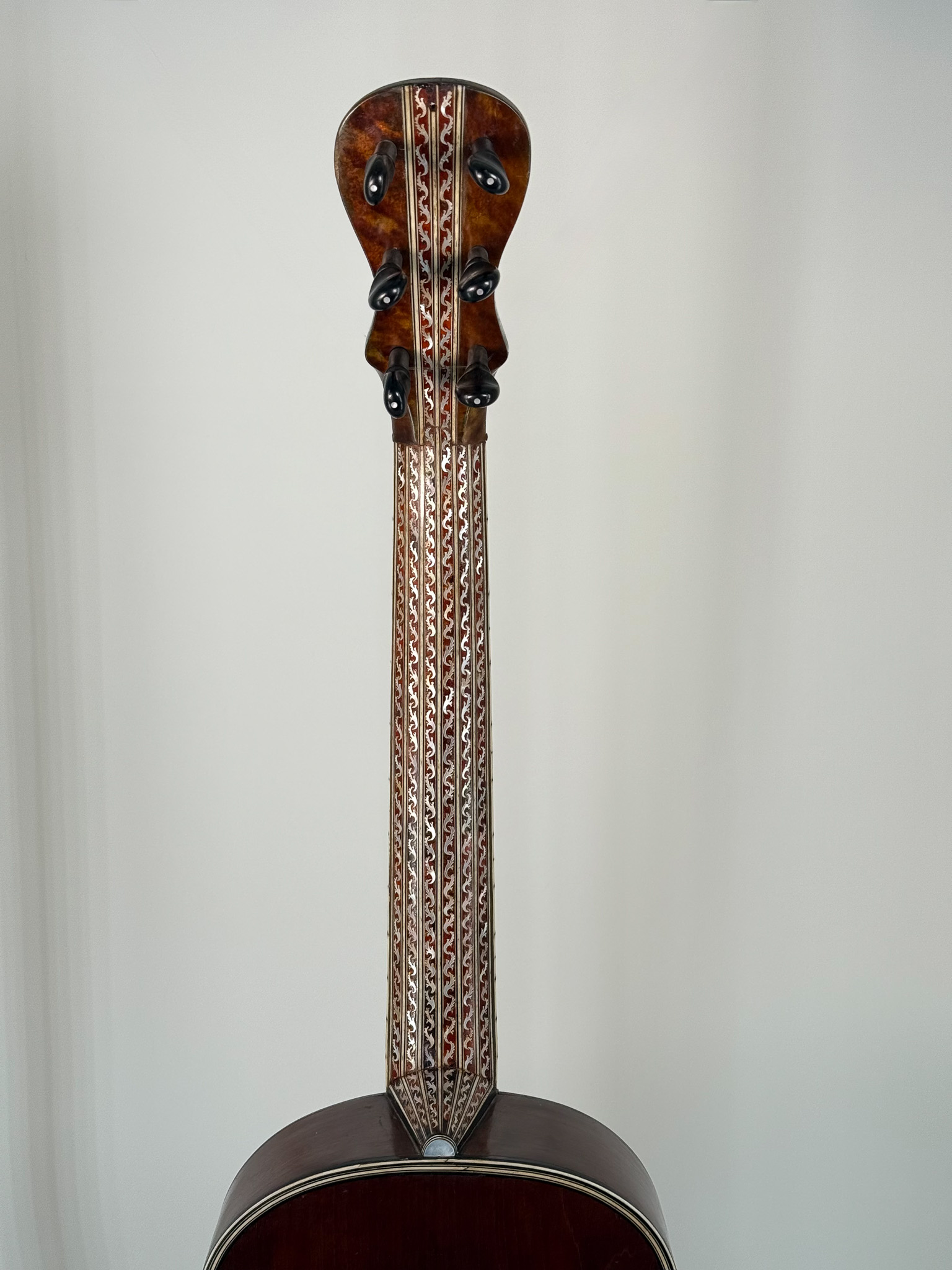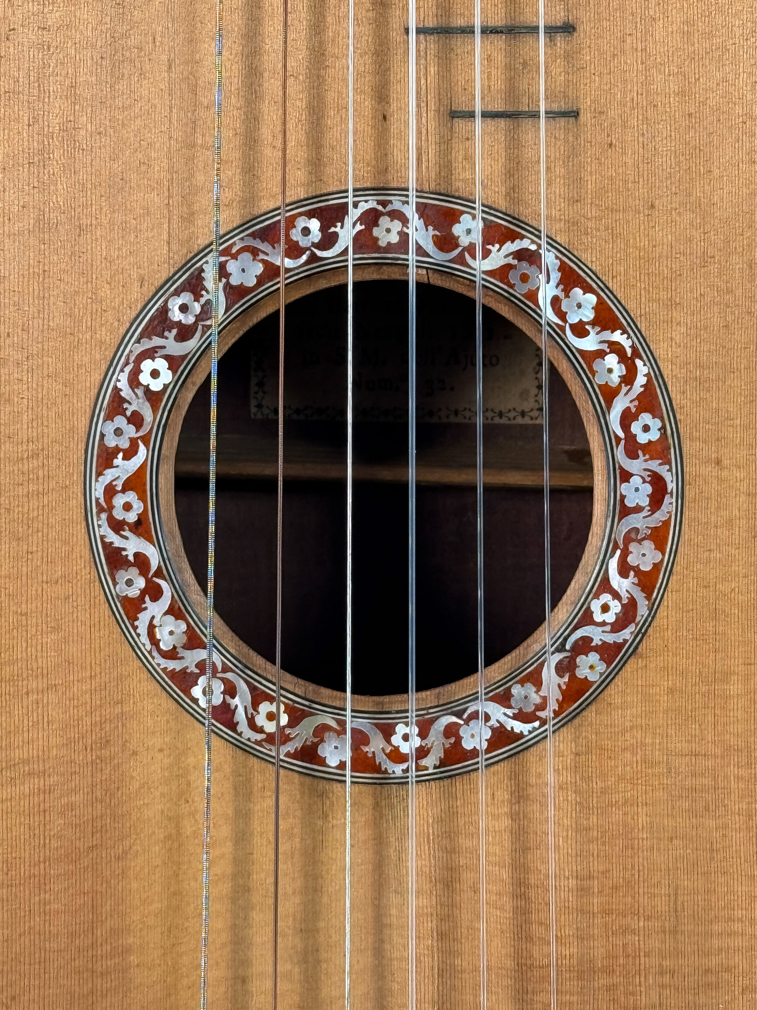 Fabricatore’s guitars are admired for their light construction, lyrical tone, and elegant Neapolitan design. They produce a sweet, intimate sound ideal for salon music and the expressive style of the Romantic era. He was among the early adopters of six single strings and fan bracing, both of which influenced later guitar evolution.