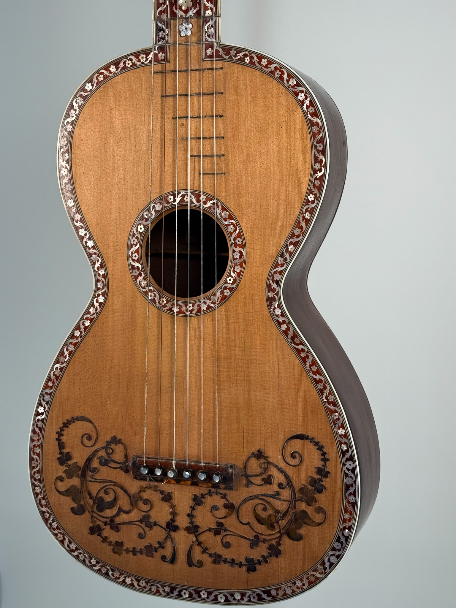Battista Fabricatore was one of the most important Italian guitar makers of the early 19th century. Working in Naples, he helped guide the guitar’s transformation from the baroque five-course instrument into the six-string Romantic guitar. Instruments from around 1811 show his craftsmanship at its peak.