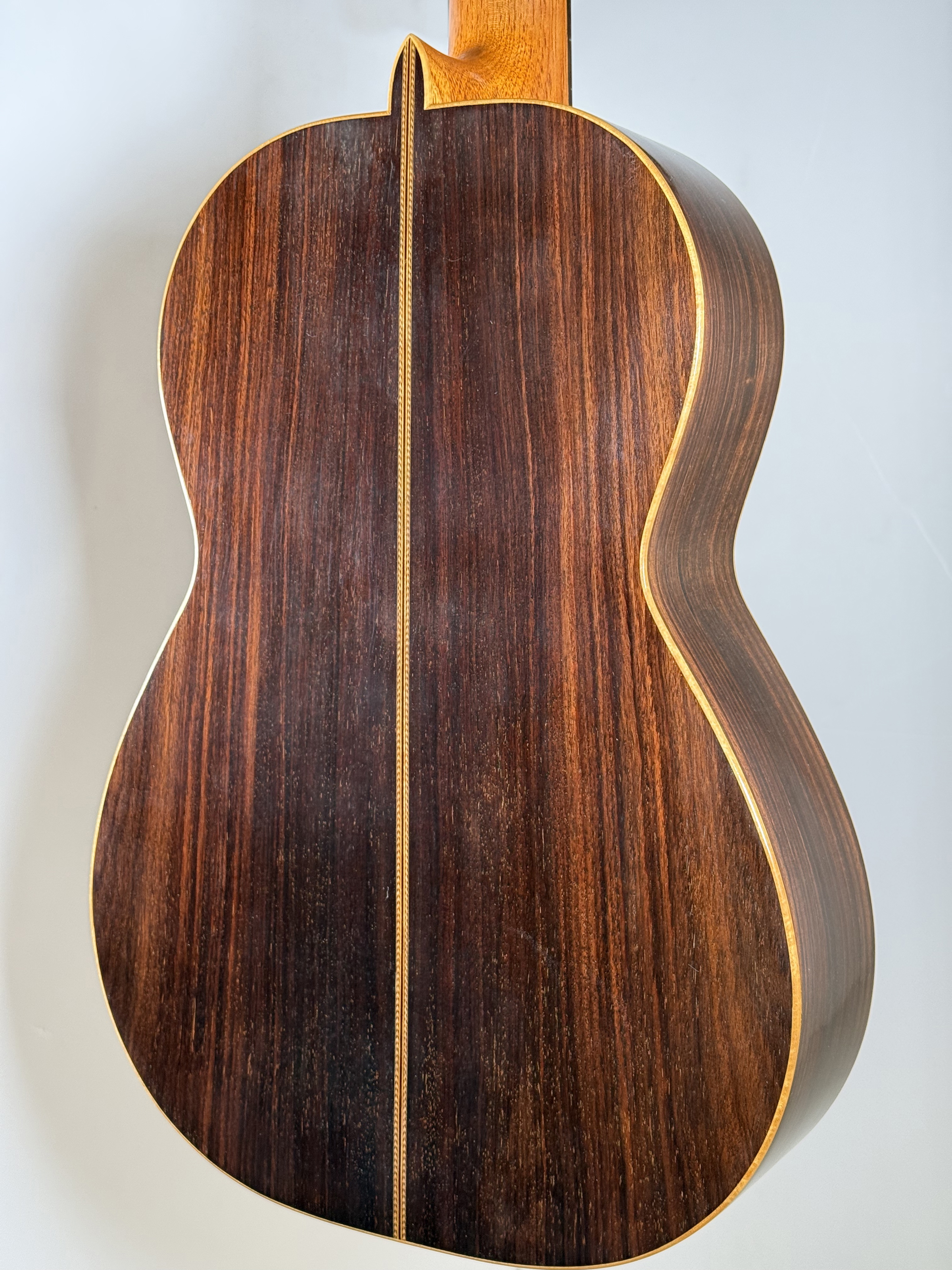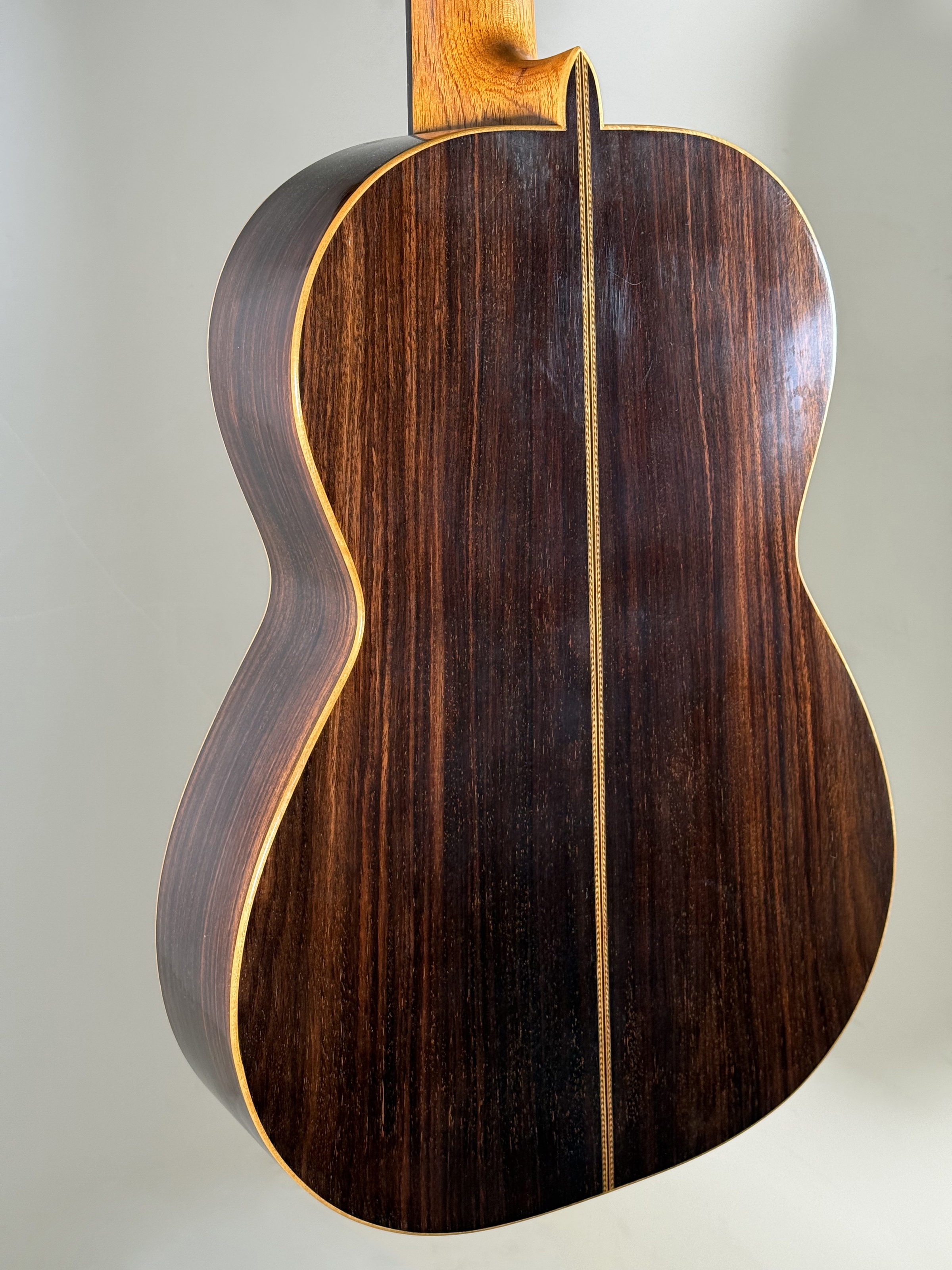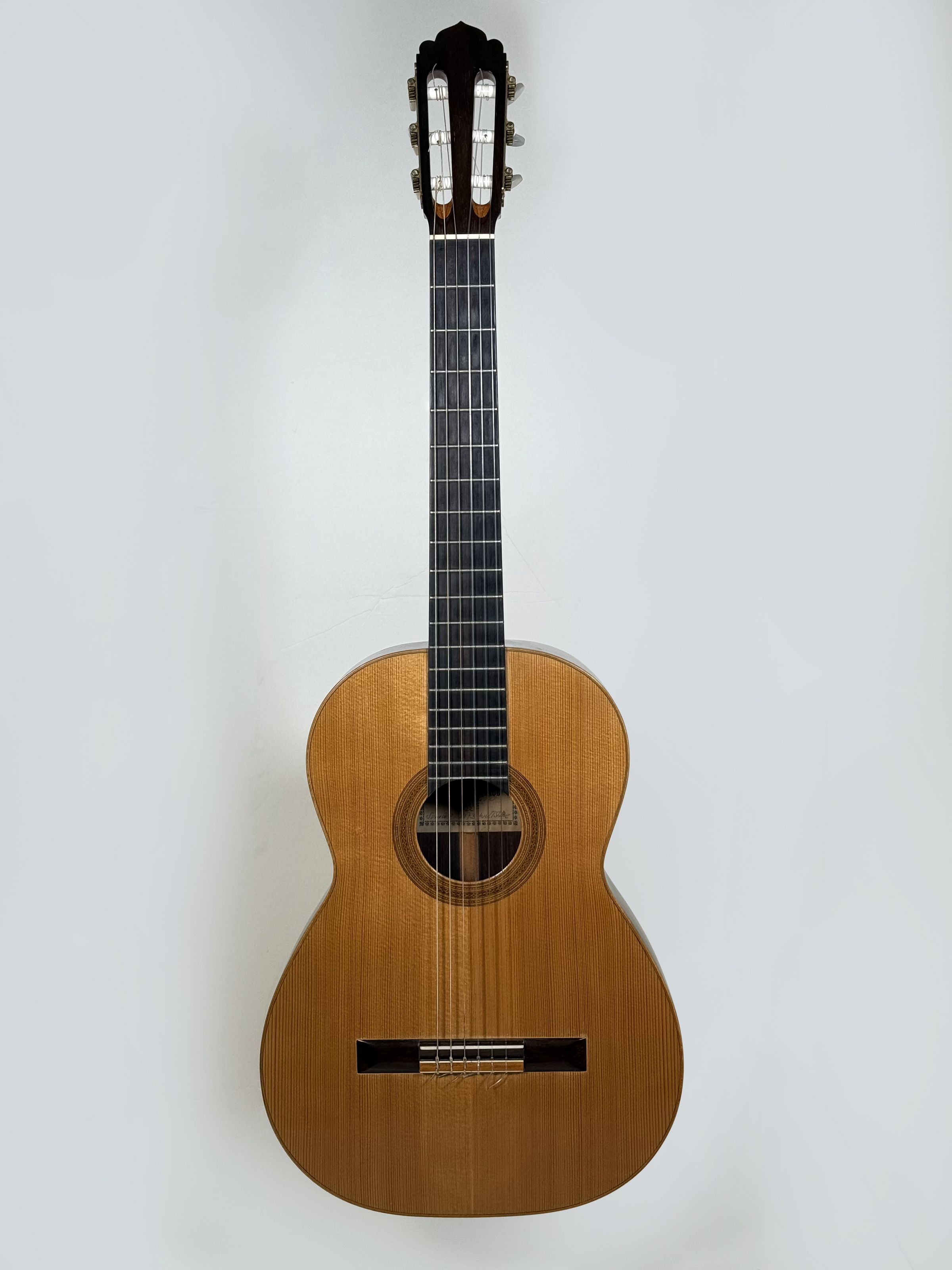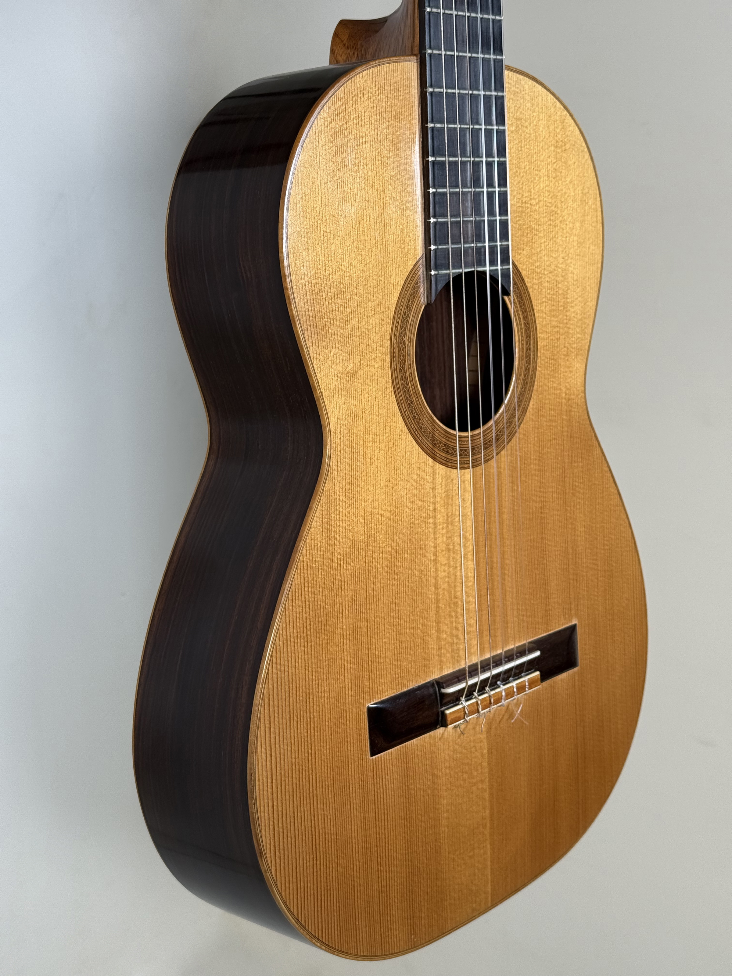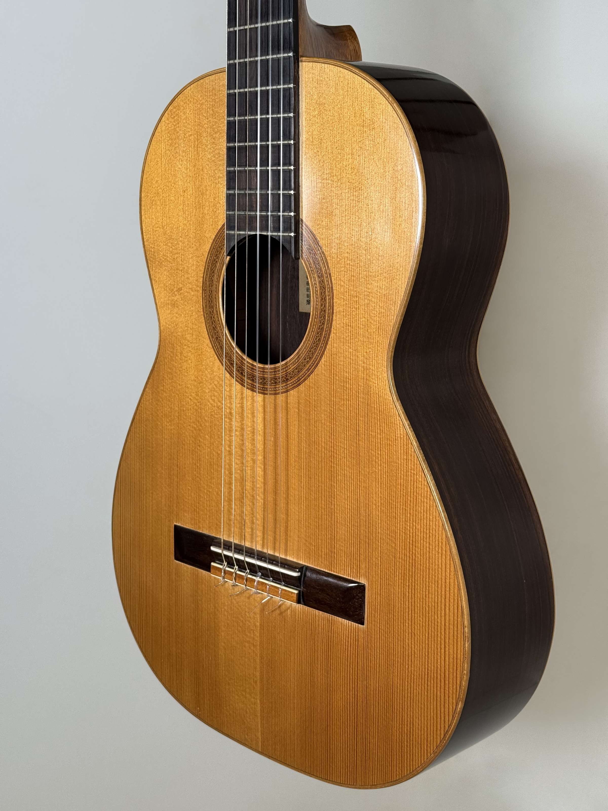 This guitar is celebrated for its expressive tone, dynamic range, and comfortable playability. It responds well to both subtle nuances and bold articulations, making it a favorite among classical guitarists. The sound is characterized by a warm, singing quality, with a balanced projection suitable for both intimate performances and larger venues.