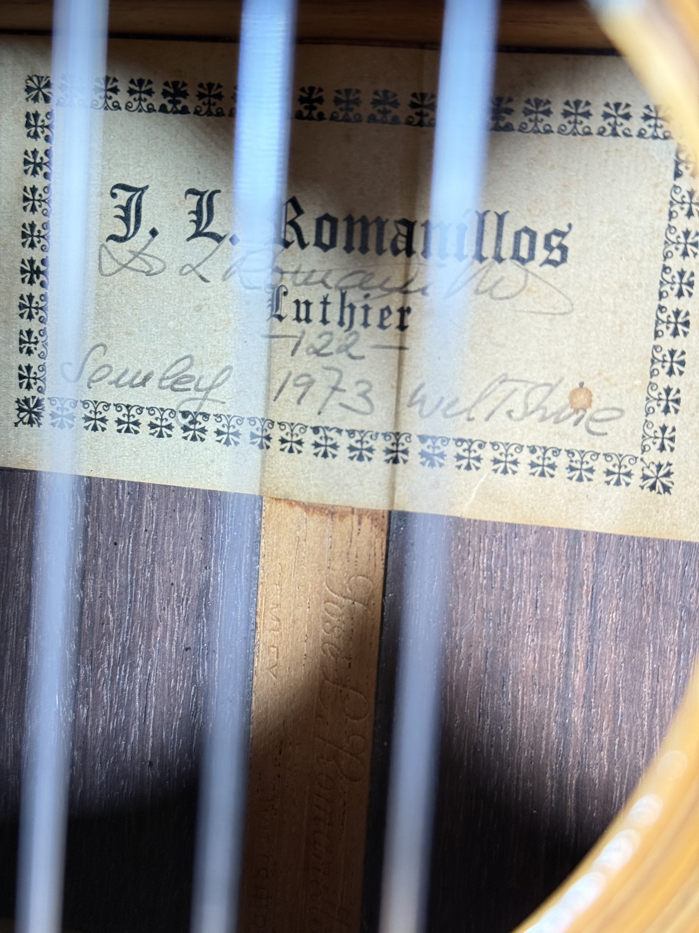 The 1973 José Luis Romanillos guitar is a masterpiece from the renowned Spanish luthier José Luis Romanillos. Built in the same year as Julian Bream's famous guitar, it reflects Romanillos's dedication to achieving the "Spanish sound", a rich, resonant tone inspired by the traditions of Antonio de Torres and Santos Hernández.