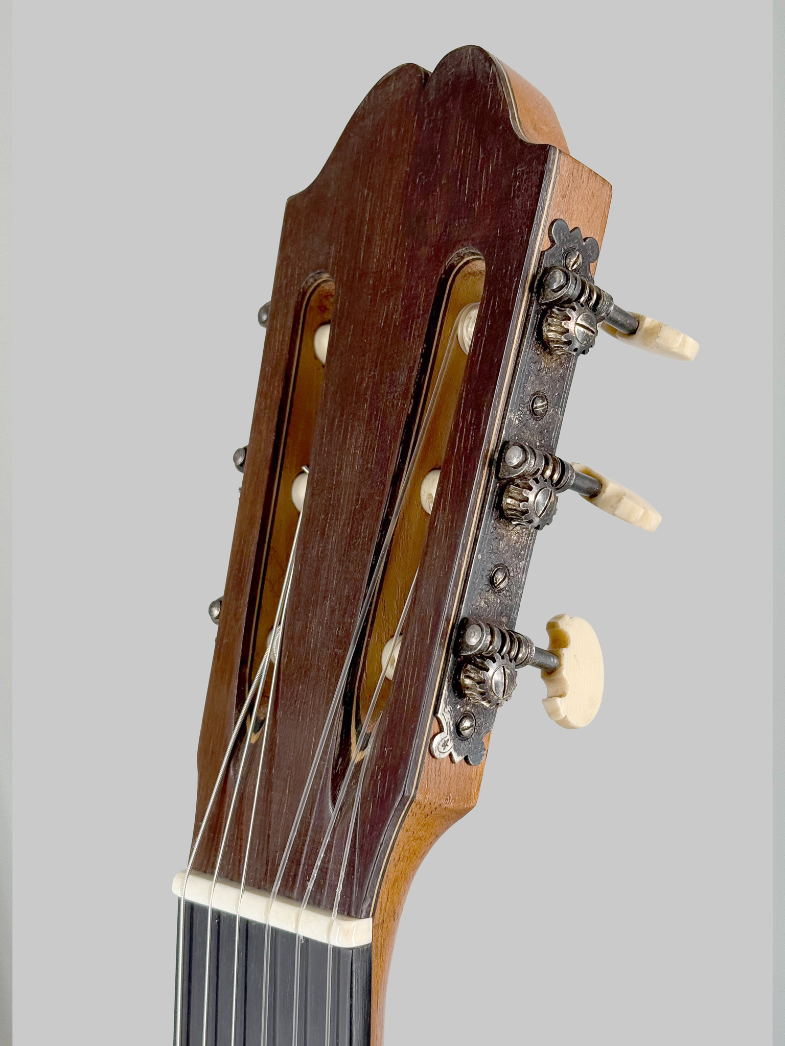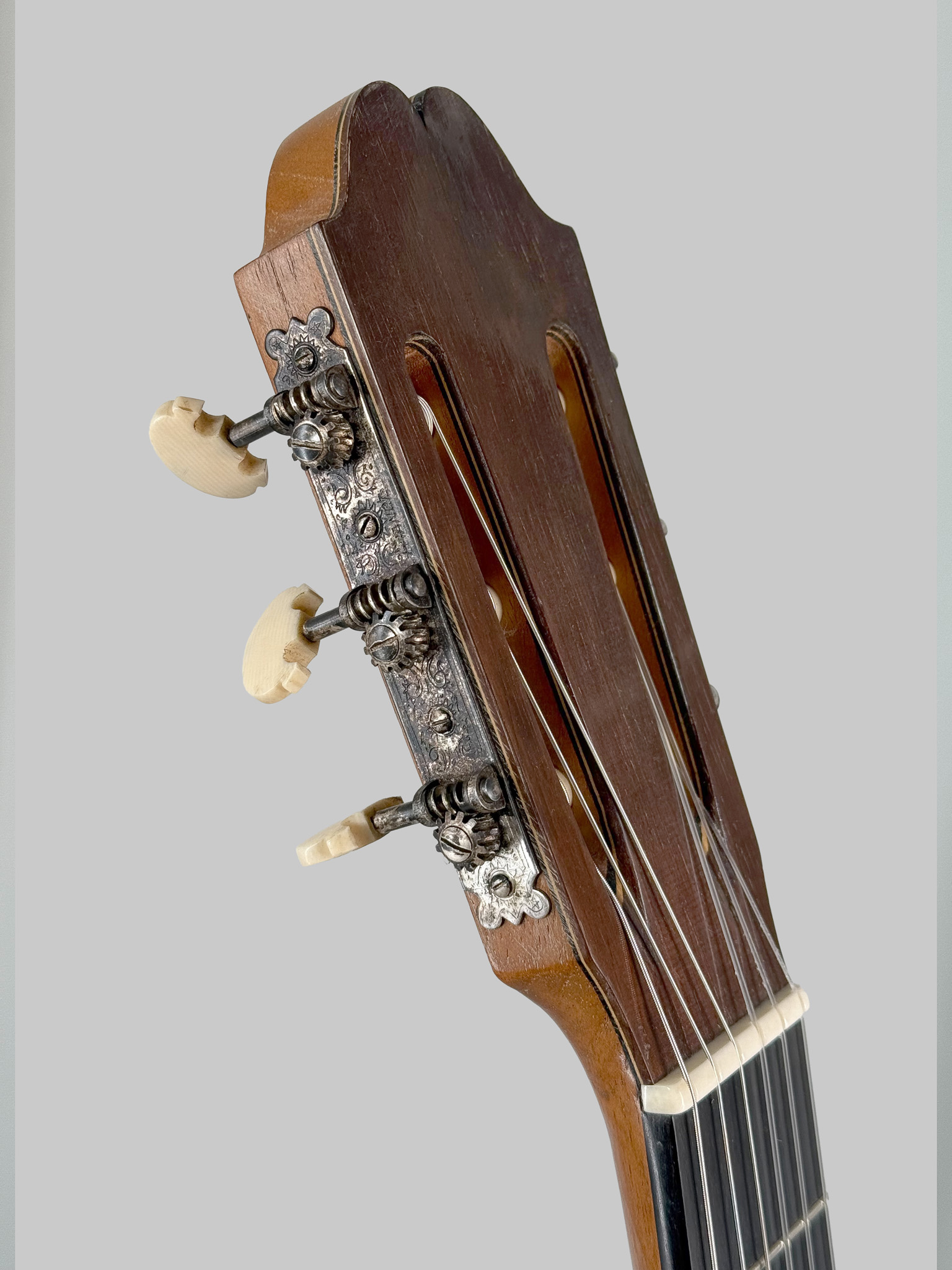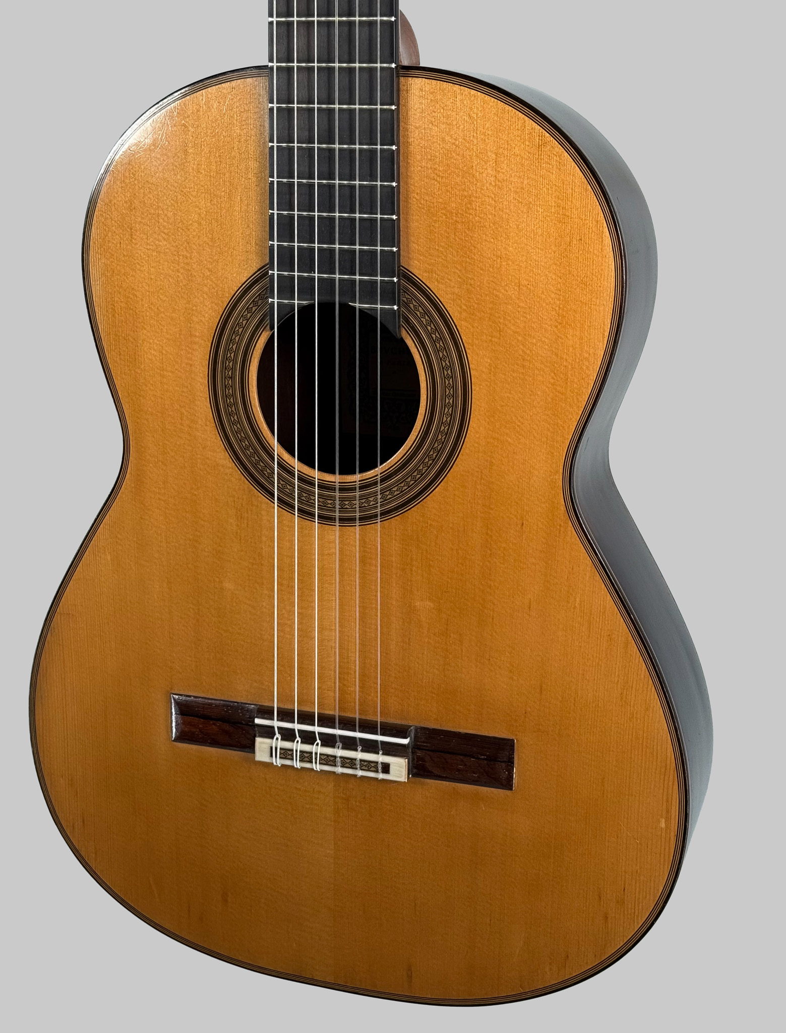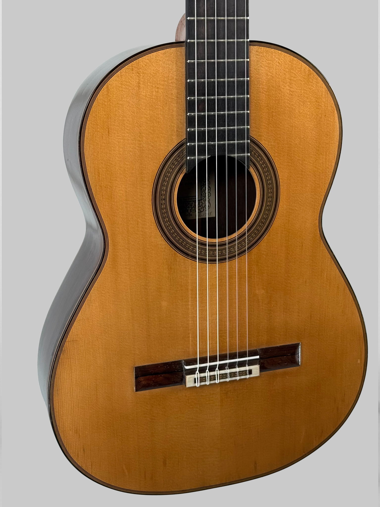 No. 62 was constructed during Bouchet’s mature period, immediately preceding some of his most celebrated instruments. It sits alongside masterpieces such as Ida Presti’s 1958 Bouchet (No. 63) and Alexandre Lagoya’s 1959 Bouchet, both of which remain preserved in the Musée de la Musique, Paris.