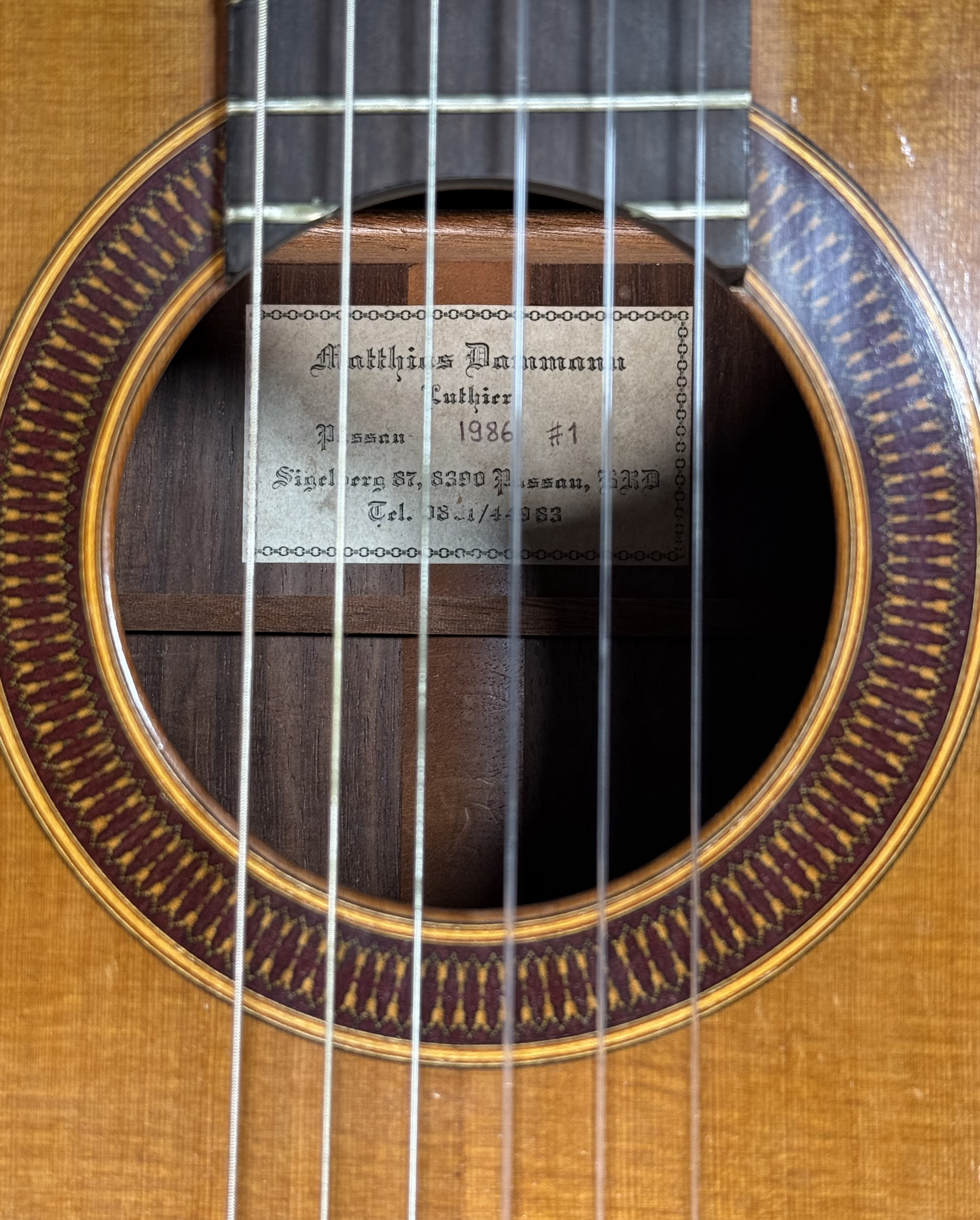 At Fonzo Guitar, we are proud to own the very first guitar made by Matthias Dammann—the No. 1 guitar, crafted by him in 1986. This is a single-top guitar, created before Dammann officially began his revolutionary Double Top era. Despite being a single top, this guitar already displays the hallmarks of Dammann’s later innovations: a powerful, rich sound with deep bass, foreshadowing the brilliance of his Double Top instruments. We are honored to preserve this historic guitar, a milestone in Dammann’s legendary career.